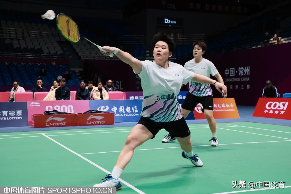 江蘇天目湖何冰嬌(左)、夏玉婷在女子雙打比賽中