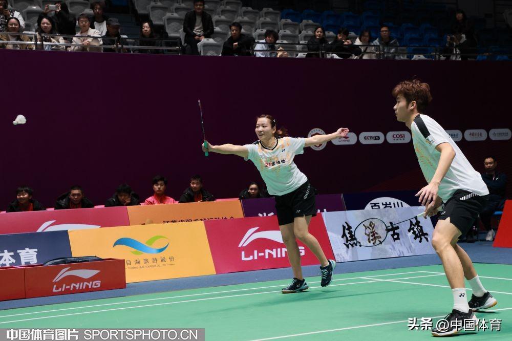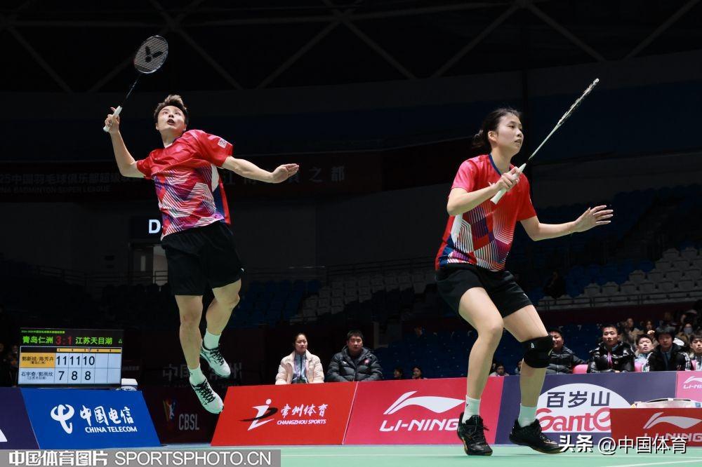 江蘇天目湖石宇奇(左)、郭雨欣在混合雙打比賽中