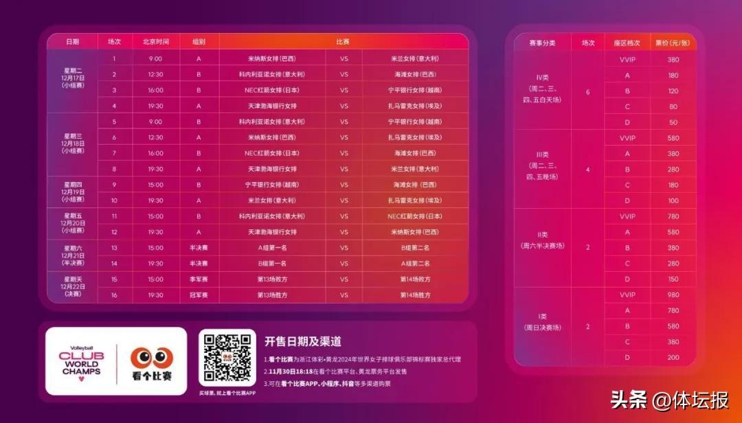 11月30日18:18起,在“看個比賽”平臺、“黃龍票務”平臺、抖音、微信小程序等多個平臺同步售票。