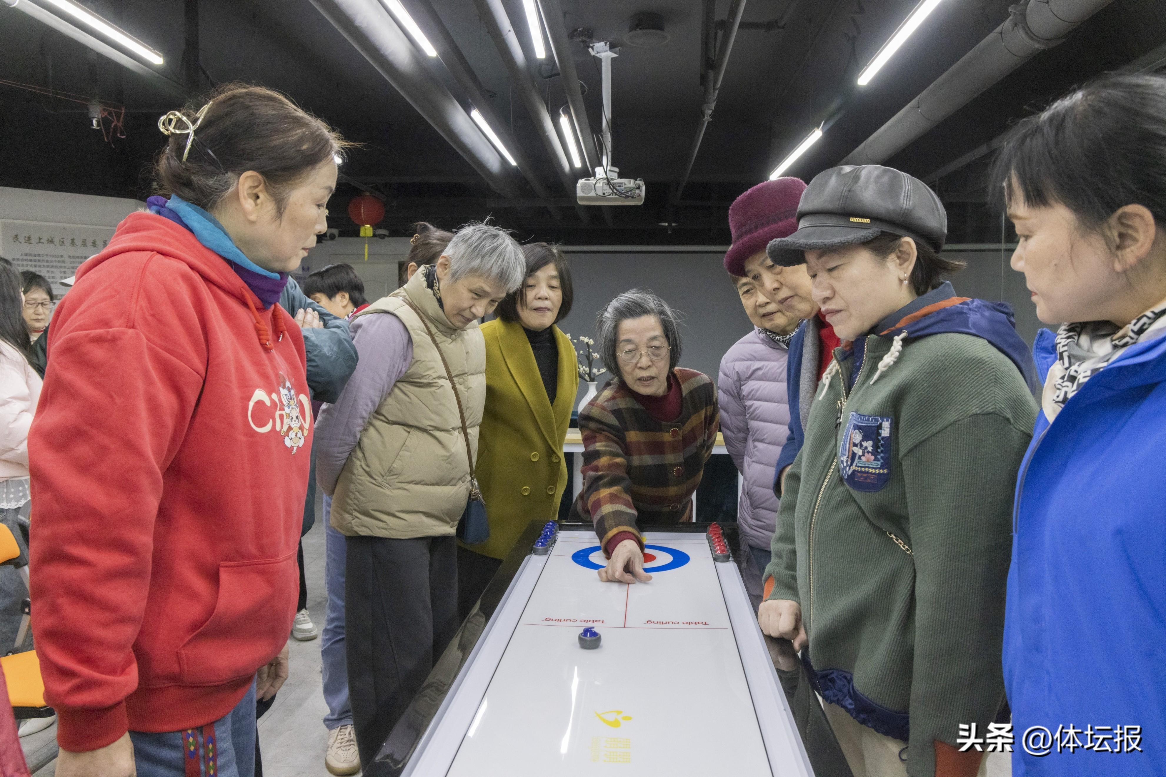 11月29日,杭州上城區桌上冰壺球運動推廣走進紫陽街道春江社區,30餘名小區老人現場觀摩並學習桌上冰壺球的技巧和規則。其中年紀最大的是92歲老人韓奇偉。