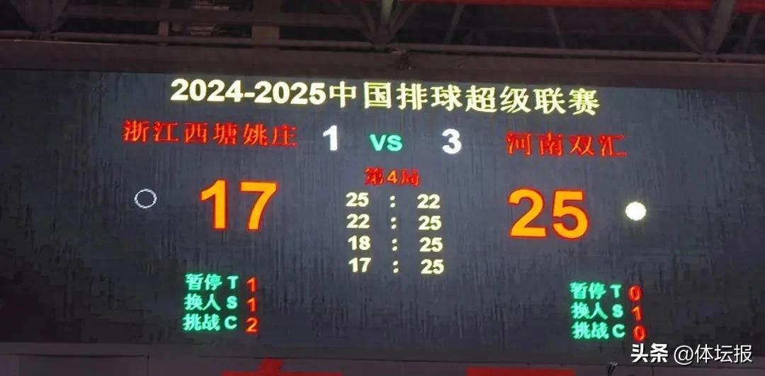 12月3日,2024-2025中國女子排球超級聯賽第十一輪B級常規賽浙江西塘姚莊女排與河南雙匯女排的比賽在嘉善縣姚莊體育館打響。浙江西塘姚莊女排大比分1:3負於對手。由於此前客場不敵B組第3的四川,浙江在B組第2的位置已經岌岌可危。