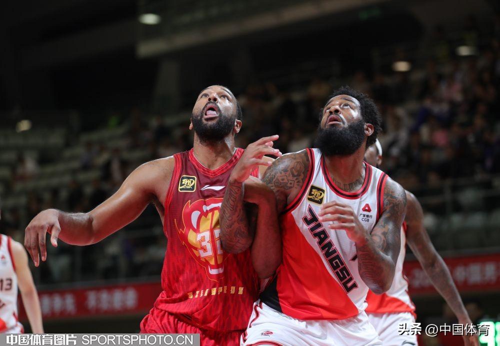 深圳馬可波羅隊湯普森(左)與江蘇肯帝亞隊湯普森爭搶籃板