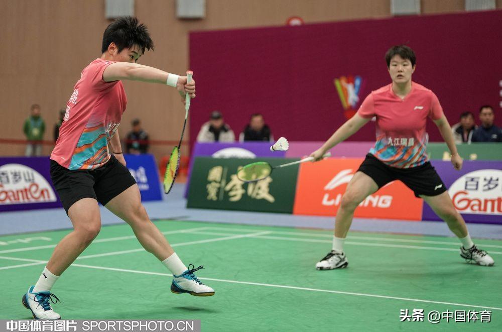 瑞昌學院劉聖書(右)、譚寧在女子雙打比賽中
