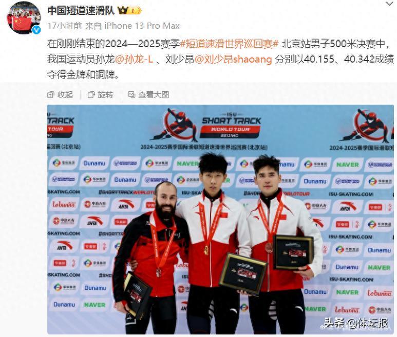 回顧當日的男子500米決賽,孫龍開賽後便佔據領先位置,劉少昂緊隨其後。進入最後一圈前,加拿大名將杜博伊斯超越至第二,但此後試圖超越孫龍未果。最終孫龍以40秒155的成績奪冠。杜博伊斯和劉少昂分獲銀牌和銅牌。