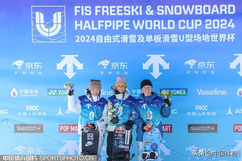 中國體育訊 12月8日,2024-2025賽季國際雪聯單板滑雪U型場地技巧世界盃崇禮站女子組決賽在河北張家口崇禮雲頂滑雪公園舉行。中國名將蔡雪桐憑藉第三跳的86.25分獲得銀牌,美國選手馬斯特羅和沙弗裏克分獲金牌和銅牌,成績分別爲88.75分和85.25分。另外一位中國選手武紹桐名列第六,成績爲69.75分。(中國體育圖片 安靈均 攝)