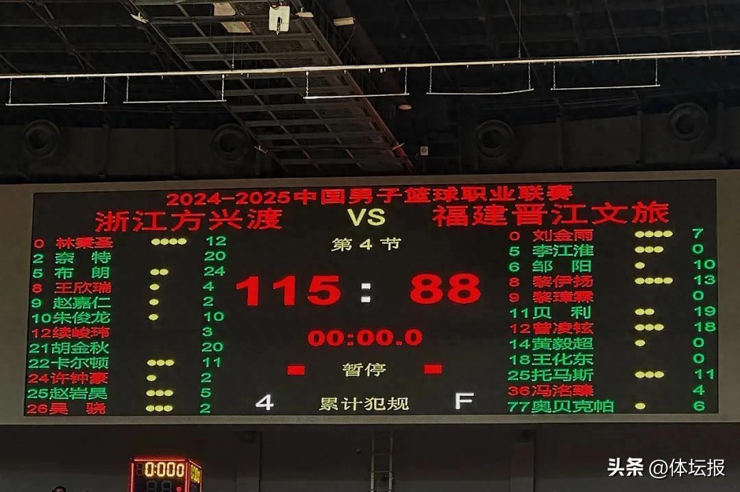 由於黃龍體育館將要承辦女排世俱杯,12月13日晚,浙江方興渡時隔六年再度回到曾經的主場杭州體育館,迎接聯賽“副班長”福建晉江文旅的挑戰。最終,方興渡115:88輕取福建,取得主場十連勝。