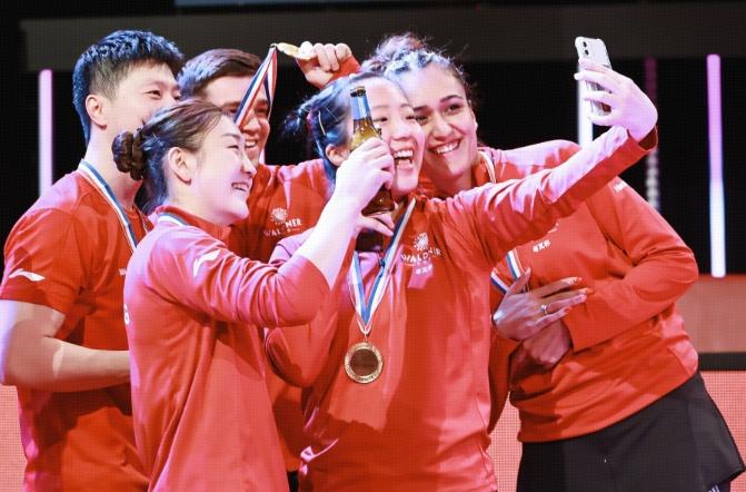 而且這次比賽,陳夢也與其他國家的運動員和諧相處,特別是跟隊伍裏年紀最小的女孩申裕斌在一起,簡直是“甜妹貼貼”,隨着馬龍拿下最後一分,申裕斌還與偶像陳夢抱在一起,畫面相當有愛,兩人的互動也讓現場的球迷發出尖叫聲。