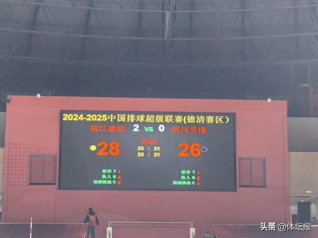 首局,浙江德清男排快速進入狀態。在現場觀衆熱情助威下,多點開花,比分一直處於領先。盤中,儘管四川男排及時叫了暫停,加強了攔網和接發球。暫停回來,越打越順的浙江德清男排沒有給對手留下機會,以25比21先下一城。