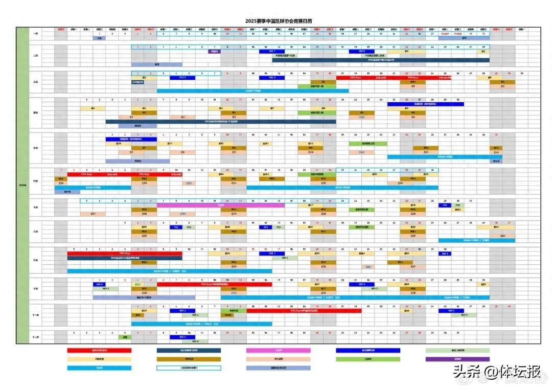 12月19日,中國足協官方公佈了2025賽季競賽日曆。2025賽季將從2月7日開始,12月5日結束,跨度近10個月,包括各類國家隊和俱樂部賽事。