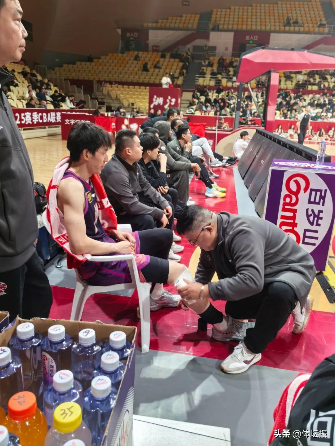 比賽第四節剛開始,吳前在防守沃倫時一個飛起,結果膝蓋受傷倒地。