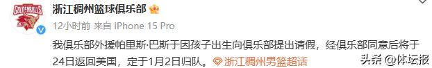 12月23日晚,浙江稠州金租男籃在主場以120:103戰勝廣州男籃,迎來本賽季七連勝。但隨後,球隊官方賬號就公佈了兩則消息,隊長吳前預計傷停一個月,外援巴斯則因爲孩子即將出生請假返回美國,1月2日歸隊。一內一外,浙江男籃損失兩員大將,對於接下來的比賽,浙江男籃將面臨嚴峻的挑戰。