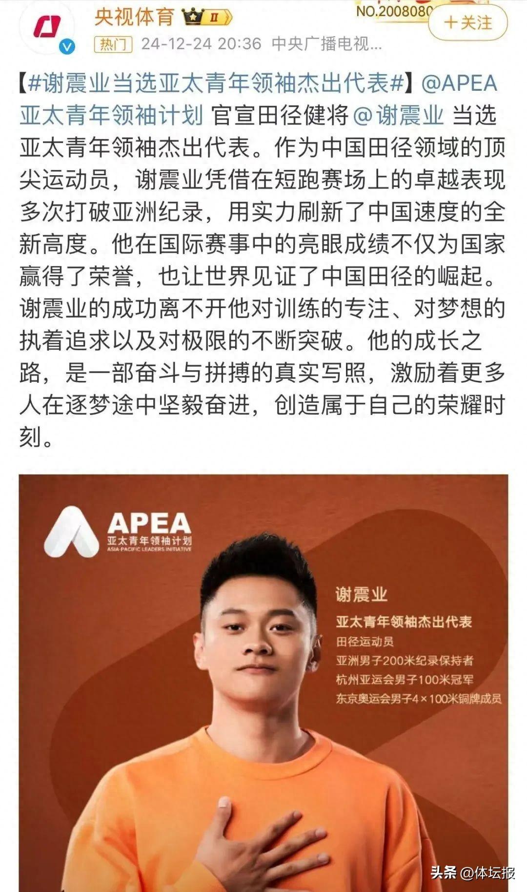 根據APEA亞太青年企業家理事會官微,一同入選的還有徐夢桃、鄒敬園等運動員。