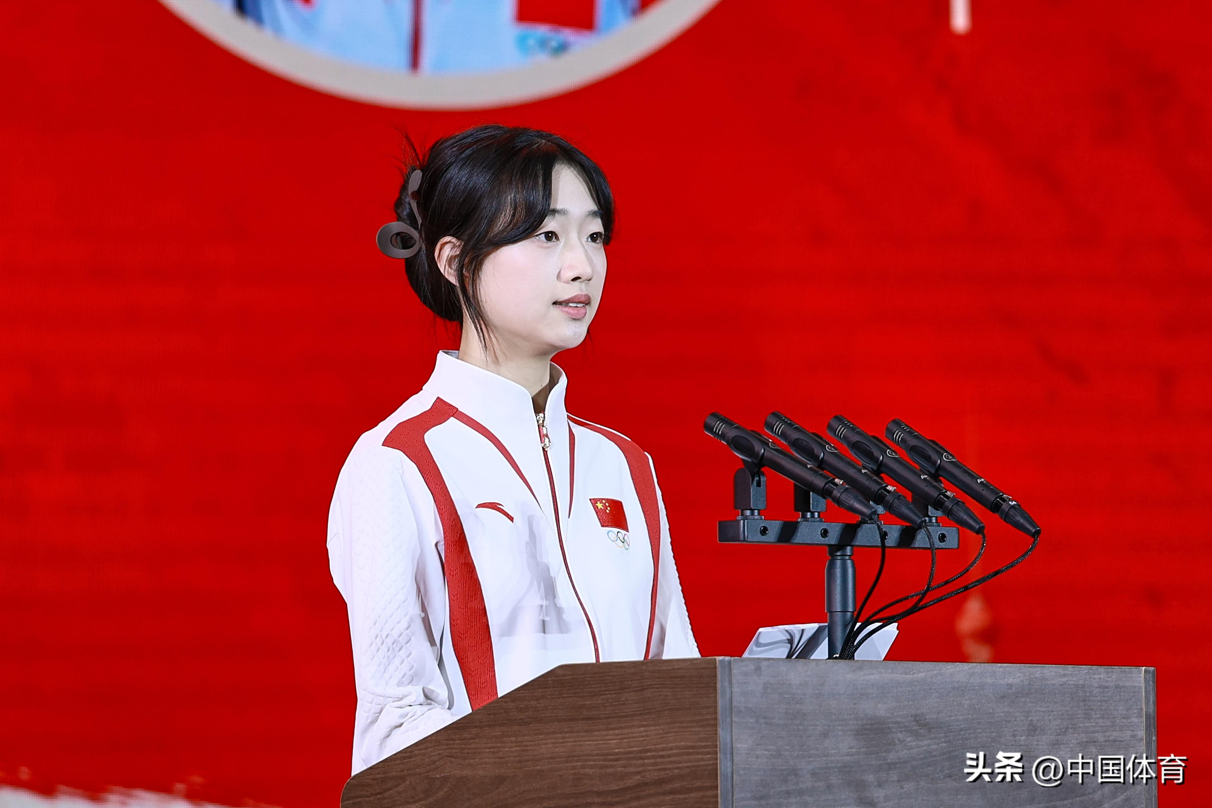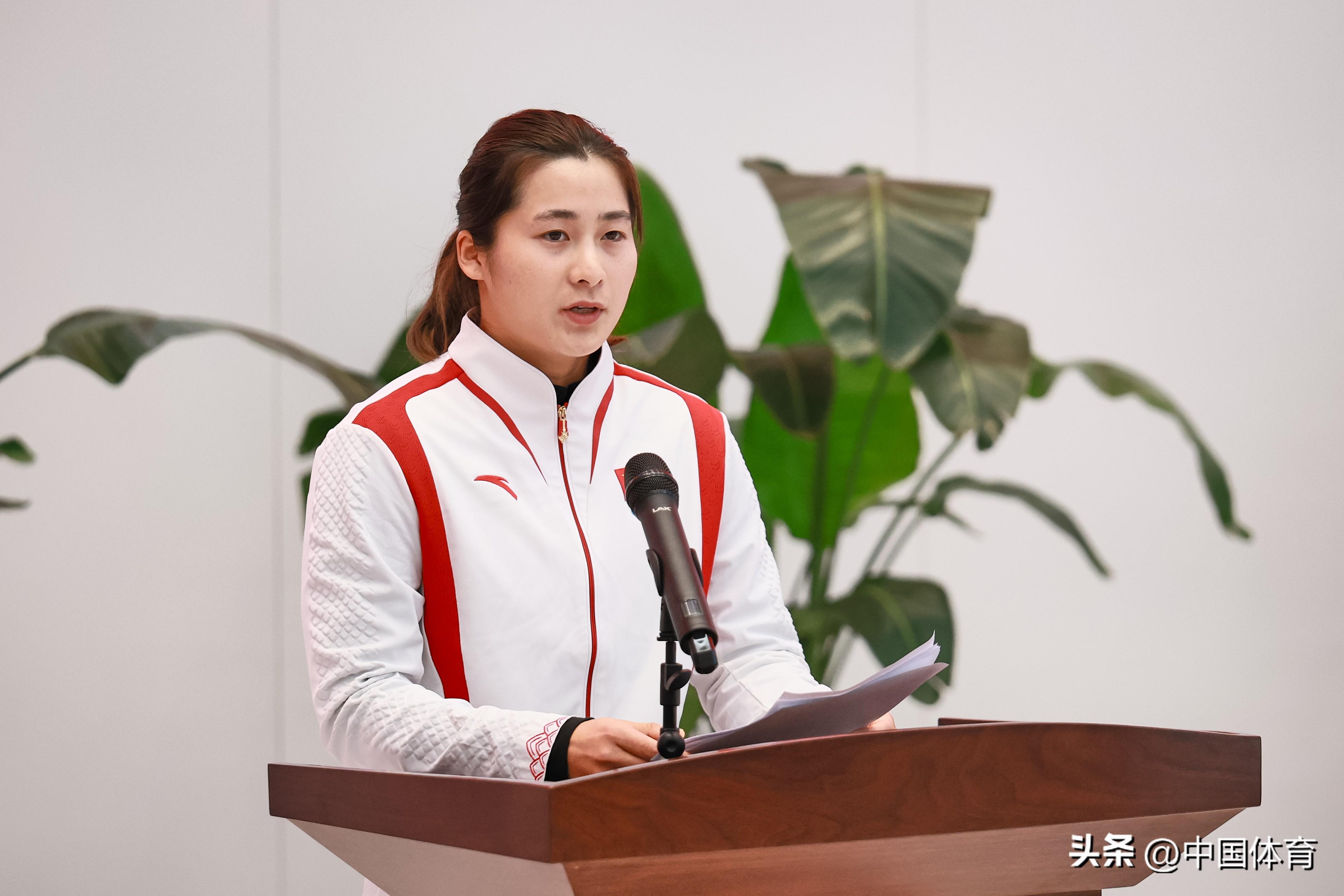 皮划艇奧運冠軍孫夢雅(左)、體操奧運冠軍鄒敬園(中)、射擊奧運冠軍黃雨婷在啓動儀式上