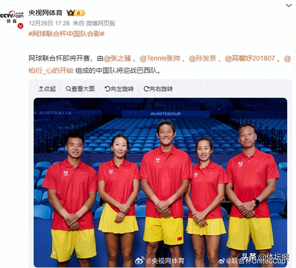 北京時間12月27日,2025聯合杯網球混合團體賽將迎來首個比賽日的爭奪。本次比賽,中國隊派出的陣容爲張之臻、張帥、高馨妤、柏衍、孫發京。