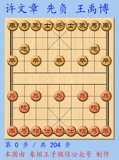 王禹博再次多出一枚小卒,這對他來說,已是夠贏,許文章眼見形勢不利,趕忙簡化,把局面導入馬炮兵仕相全對馬炮雙卒士象全。