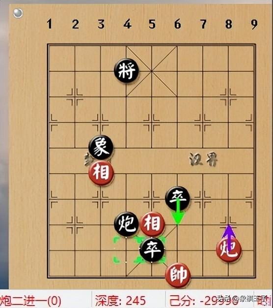 當下黑方兩個都是邊卒,紅有一對一路對頭兵,若細緻應對,有和棋之望,不料許文章未考慮防守,冒險踩踏黑象,黑9路邊卒解套,且打掉紅邊兵。