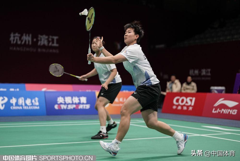 瑞昌羽球學院俱樂部選手王祉怡(右)、孫依雪在比賽中