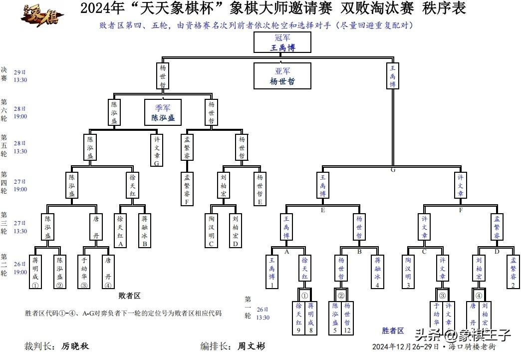 此次大賽,從19日至29日,持續十天,筆者全程直播和報道,日均十數小時,耗神過大,氣血流失,腿痛未減,腰傷加重,寫罷此數千字全景大總結文,心力已盡,2024到此,棋友再會,感謝!