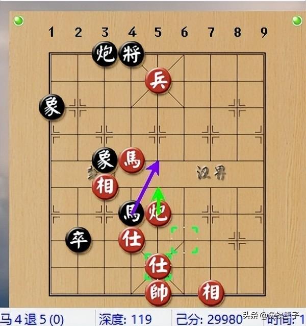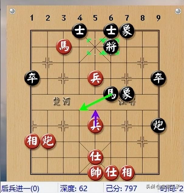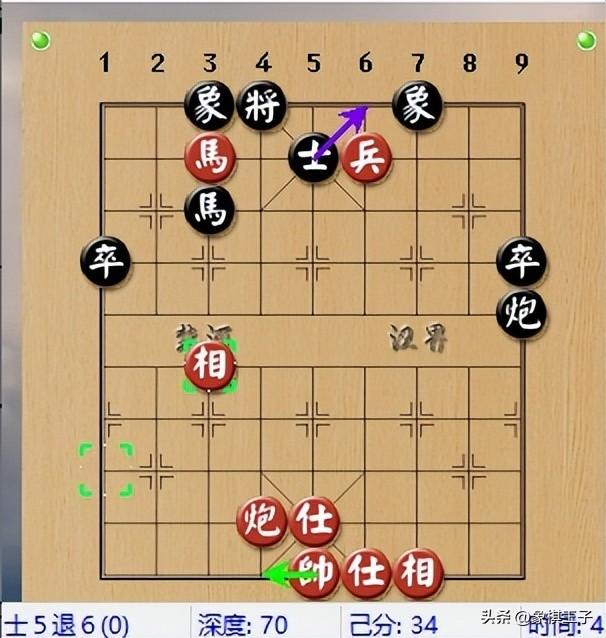 黑棋士沒了,紅方爲之後兵四平五鎮花心兵,埋下了超級利器,黑此步若士5退6下士,或士5進6揚士,不給紅破士,紅炮將,黑可墊炮,則局上鹿死誰手,尚難預料。