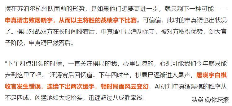 又過了約半小時,申真諝執黑以四分之三子的優勢,逆轉成功,拿下了這場“千金局”。系統研判,僅官子階段,申真諝就搶下了十目,最終讓他反敗爲勝。