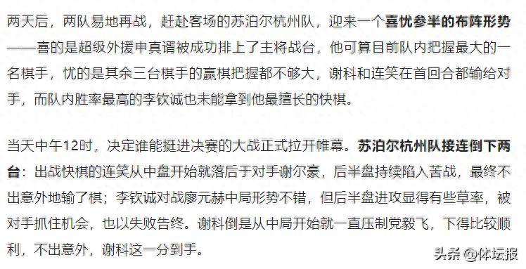 “和成都隊下的這兩輪,或許是我們本賽季以來,最難下的兩場棋。當然,我們還要去面對決賽的挑戰。不過在此之前,我想和我的隊員一起去短暫享受這來之不易的勝利。”汪濤說道。