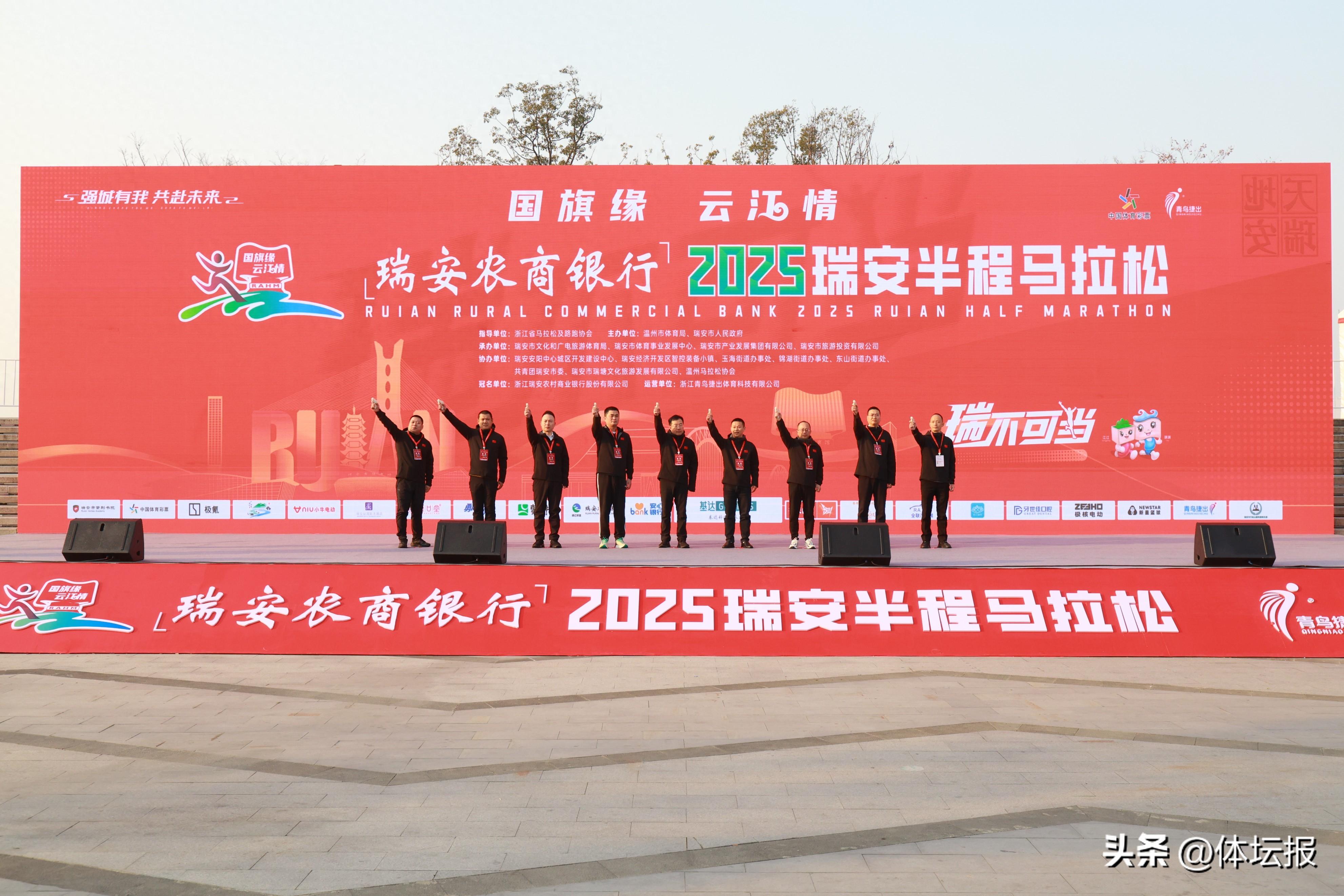 2025年1月1日上午,瑞安農商銀行·2025瑞安半程馬拉松在瑞安市東外灘青春公園準時鳴槍開跑。來自不同國家和地區的8000名選手齊聚瑞安,用奔跑慶祝新年,共享這一場充滿速度、激情、活力的體育盛宴。瑞安市委書記李堅,溫州市體育局副局長餘錫忠,瑞安市委常委、宣傳部長孫寒星出席開幕式,併爲比賽鳴槍發令。