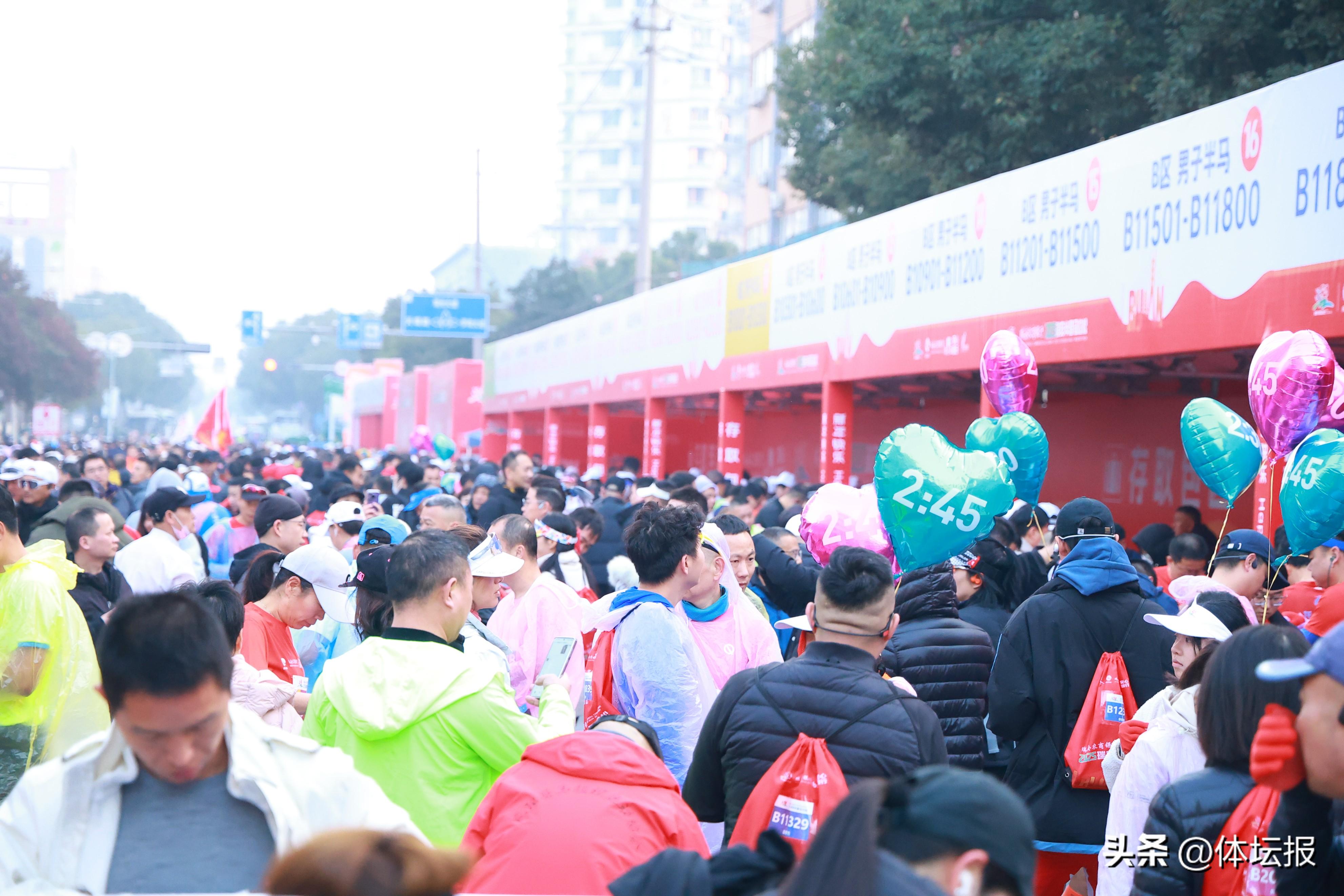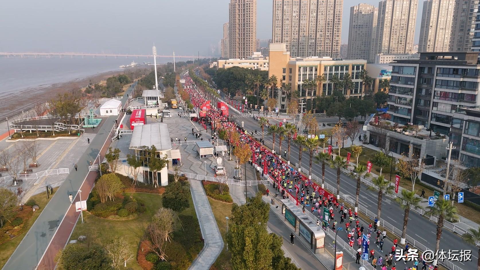 新年第一天,東外灘青春公園人頭攢動,數千名選手正在寒風中爲開賽熱身。