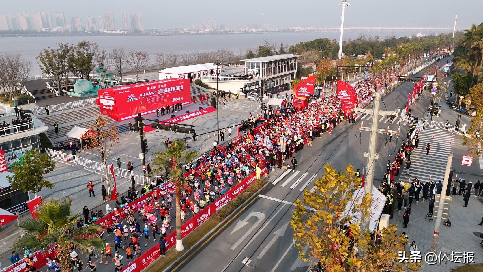 上午8時,隨着發令槍響,參賽選手們如潮水般湧出起點線,瞬間點燃了現場氣氛,選手們沿着江邊綠道競相奔跑,向着終點衝刺。