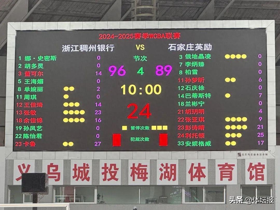 1月1日,2024-2025賽季WCBA聯賽第十八輪進行,浙江稠州銀行女籃坐鎮主場迎戰石家莊英勵女籃。最終,浙江女籃以96:89戰勝對手,用勝利作爲新年禮物送給支持她們的球迷。
