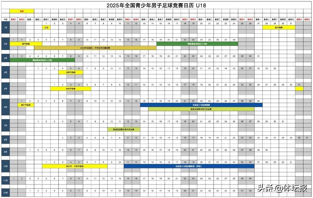 值得注意的是,三大球運動會2025年不單獨進行,而是併入全運會,即全運會U18組;學青會將在2027年上演;今年還將開設不同組別的錦標賽職業俱樂部組、足球錦標賽重點城市組和足球錦標賽會員協會組。