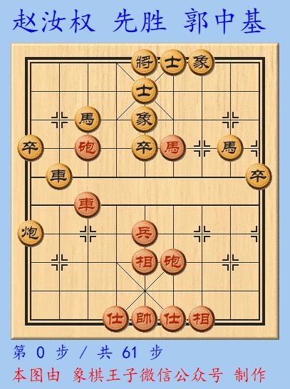 亦有73歲香港棋王趙汝權,寶刀不老,面對衆位少將,顯露老黃忠之功,執先中局以精妙戰術,拖死比自己小五十多歲05年郭中基一車,巧擒一炮,車馬炮兵四子合力破城的雄威。