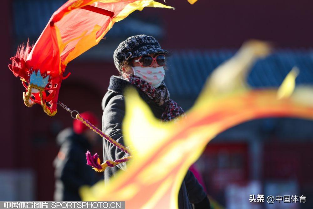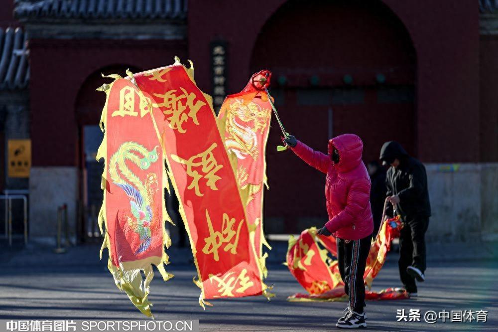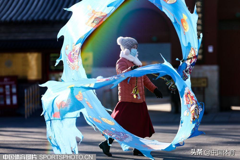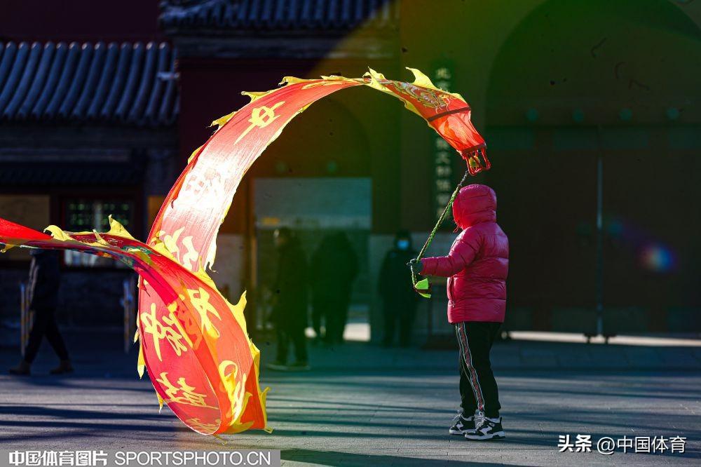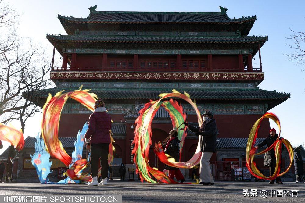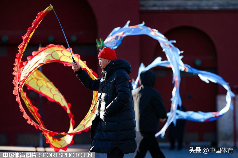 中國體育訊 1月9日,在北京西城區鐘鼓樓之間的鐘鼓樓廣場上,熱愛健身的市民們正在進行健身舞龍甩球活動。圖爲活動現場。(中國體育圖片 安靈均 攝)