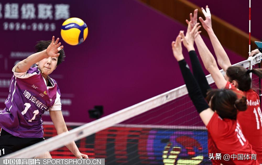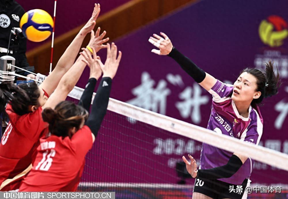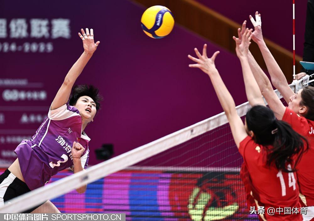 中國體育訊 1月14日晚,2024-2025中國女子排球超級聯賽A級季後賽第19輪,北京北汽坐鎮主場北京光彩體育館,迎戰衛冕冠軍天津女排。雙方激戰三局,最終北京北汽以0比3(16比25、23比25、26比28)告負。(中國體育圖片 王憲民 攝)王藝竹(右)扣球金燁(左)扣球(左起)王媛媛、劉美君攔網(左起)王媛媛、劉美君攔網王媛媛(右)、孟豆(右二)攔網王藝竹(左)扣球楊藝(右)接球陳博雅(左)扣球劉美君(左)扣球