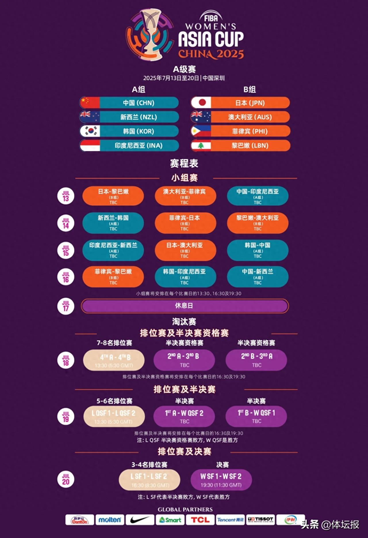 1月14日,國際籃聯發佈了2025年FIBA女籃亞洲盃A級賽的分組和賽程。