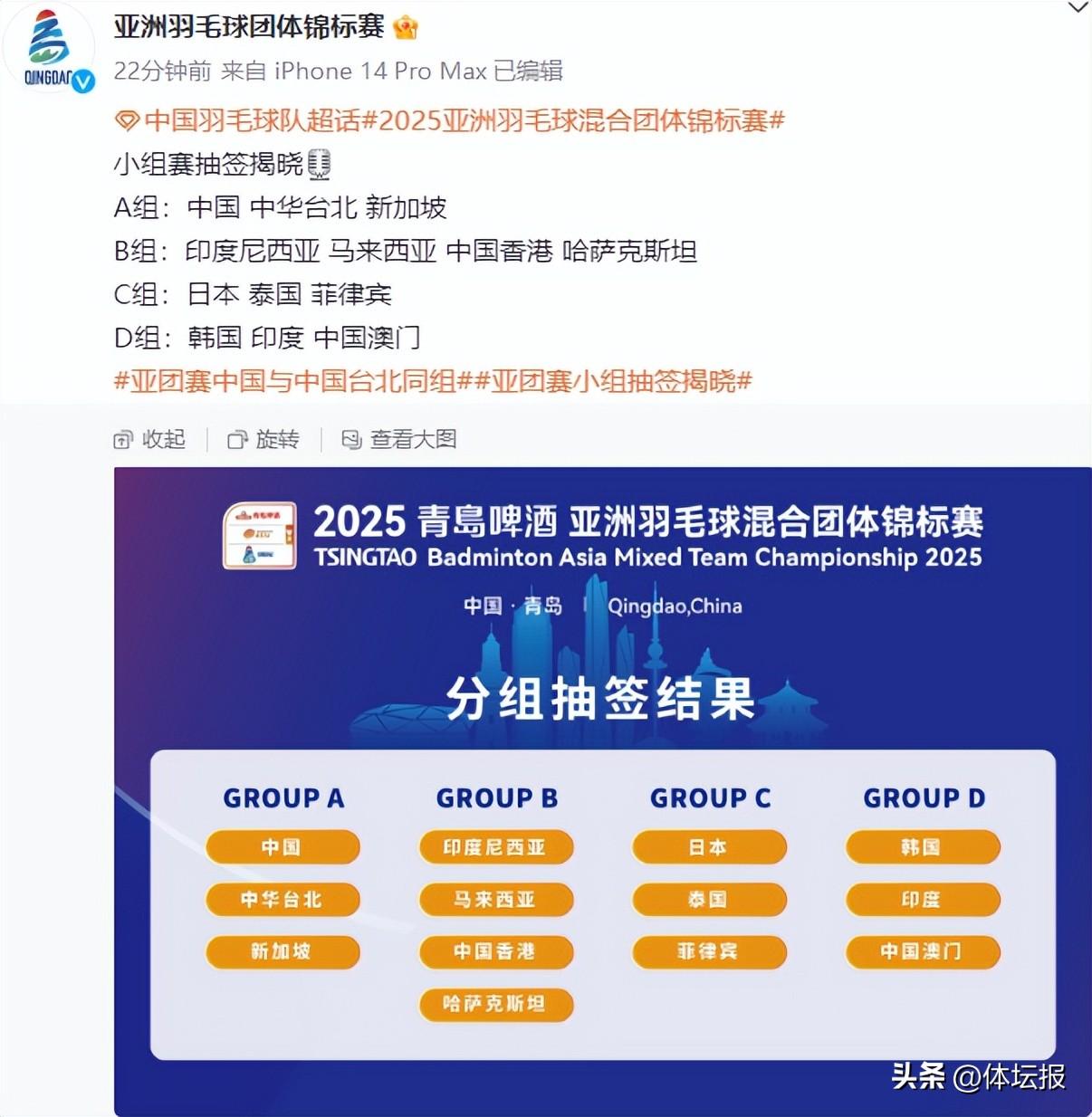 此外,本次比賽是亞洲羽毛球混合團體錦標賽首度落戶中國內地,國羽有望攜主場之利衝擊三連冠。