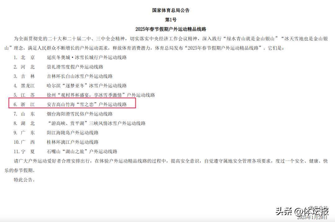 日前,國家體育總局發佈“2025年春節假期戶外運動精品線路”。全國共有11條線路入選,其中我省安吉高山竹海“雪之戀”戶外運動線路上榜。
