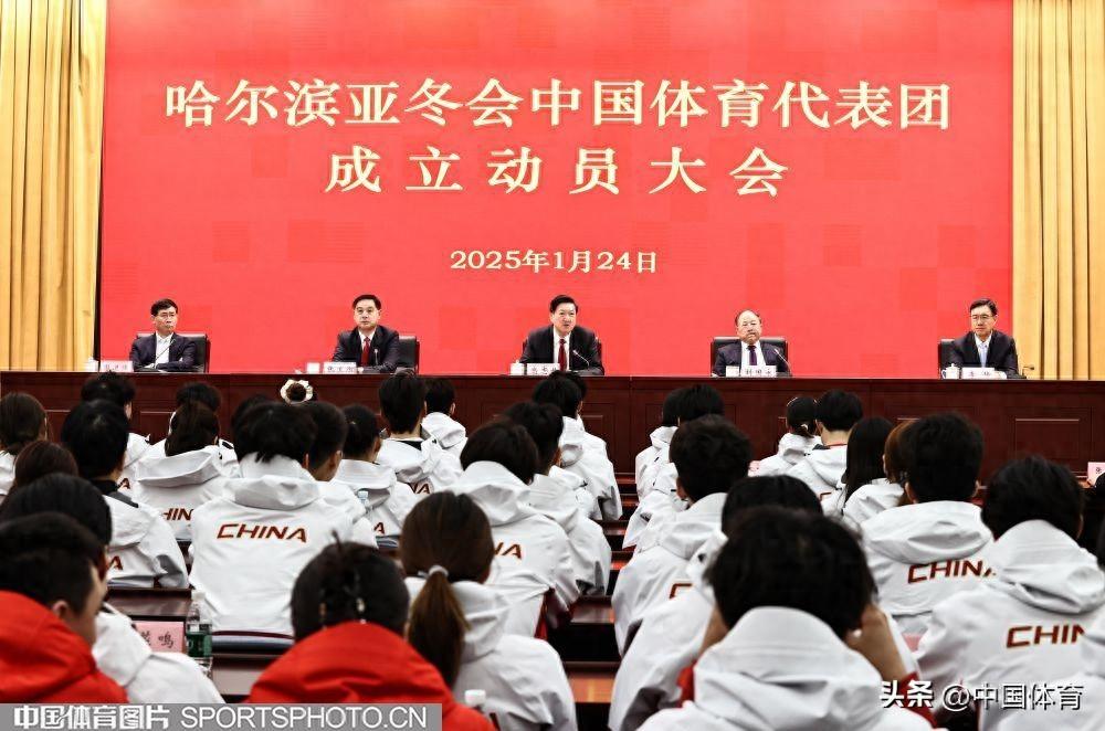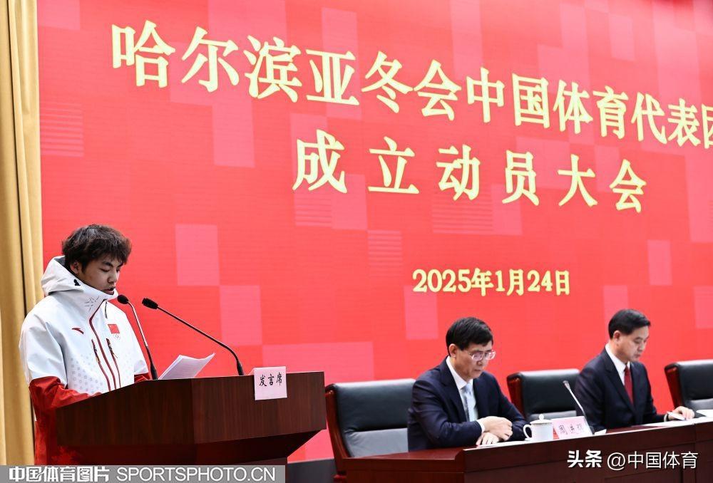 中國體育訊 今日(1月24日)上午,哈爾濱亞冬會中國體育代表團成立動員大會在國家體育總局召開,中國體育代表團正式成立。據瞭解,哈爾濱亞冬會中國體育代表團由257人構成,其中運動員170人。中國體育代表團將參加6個大項全部小項的比賽,報名參賽的170名運動員,男女各85人,平均年齡23歲,年齡最大的40歲,年齡最小的16歲。147名運動員爲首次參加亞冬會,23名運動員曾參加過亞冬會。48人蔘加過北京冬奧會,有6位北京冬奧會冠軍。(中國體育圖片 王憲民 攝)