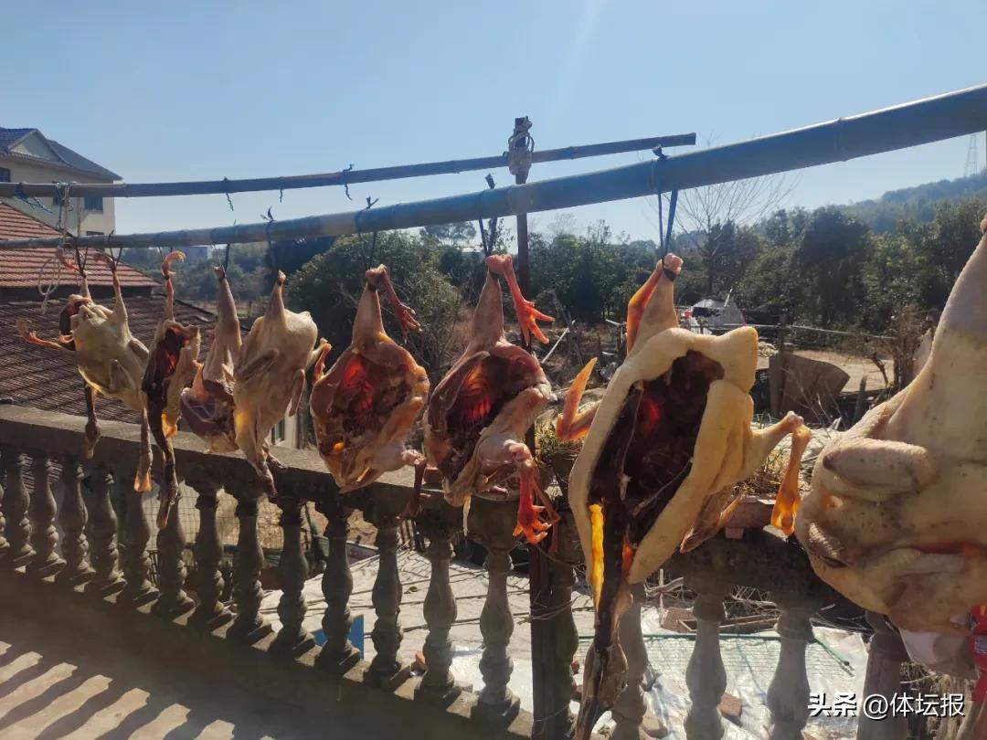 臨近年關,家裏總會備一些醬貨,今年當然也不例外。陽臺上,一排風乾的土雞被懸在空中,靜待着被端上桌的一刻。除了雞,還能聽到一旁膘肥體壯的鴨子們的嘎嘎聲。這,就是家鄉的味道。