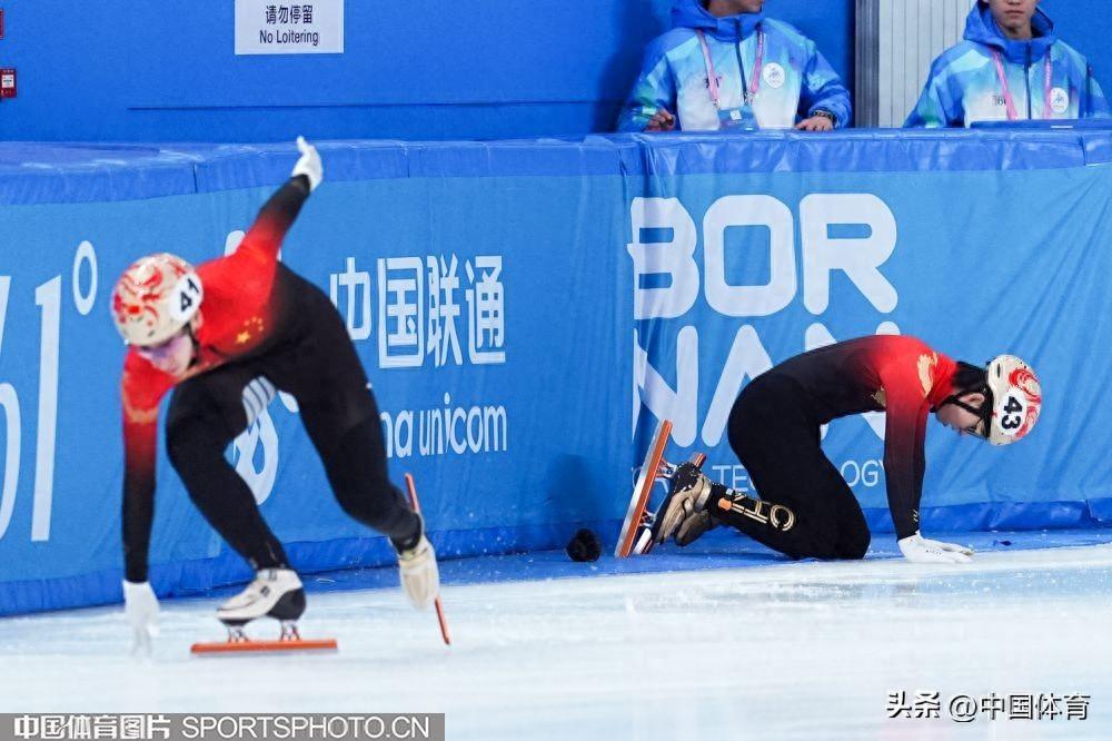 中國體育訊 2月8日上午,第九屆亞冬會短道速滑混合團體2000米接力決賽在黑龍江冰上訓練中心綜合館舉行。由範可新、公俐、劉少昂、林孝埈組成的中國隊在領先的情況下,林孝埈因冰刀卡住而摔倒,最終中國隊以2分59秒017的成績獲得第四名。韓國隊以2分41秒534摘金,這也是本屆亞冬會產生的首枚金牌。哈薩克斯坦隊和日本隊分獲銀牌和銅牌,成績分別爲2分42秒258和2分44秒058。(中國體育圖片 魏徵 攝)
