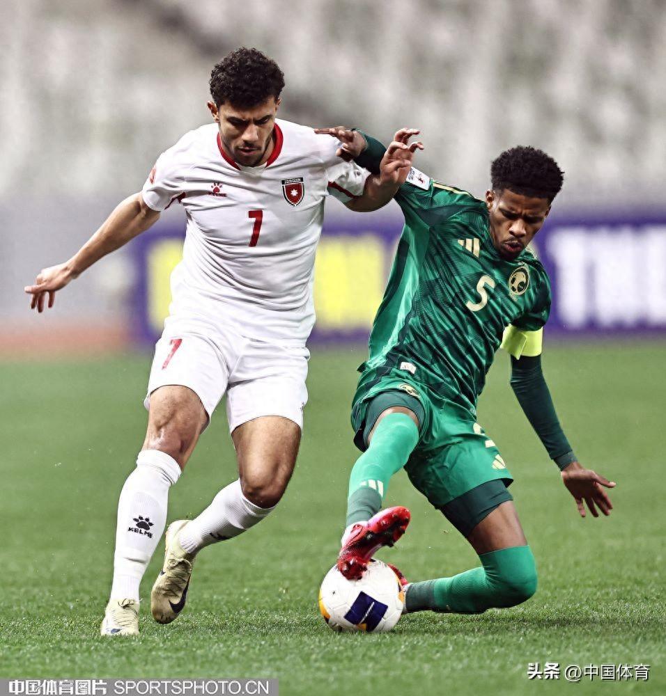 中國體育訊 2月13日,2025亞足聯U20亞洲盃小組賽B組在深圳寶安體育場舉行,約旦隊0比1不敵沙特阿拉伯隊(綠衣)。圖爲比賽場景。(中國體育圖片 王憲民 攝)