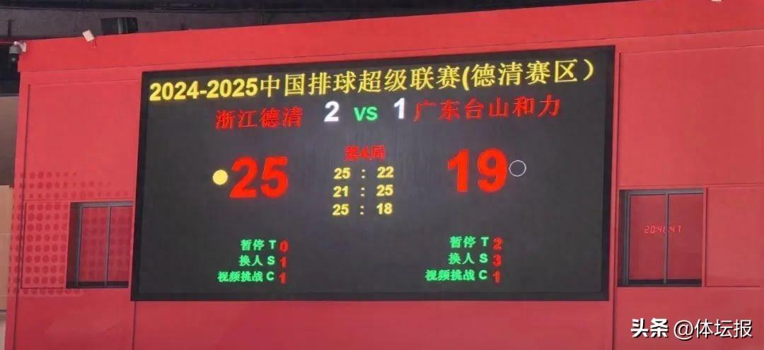 第三局,浙江德清男排開局手感火熱,接連發球得分,逐漸拉開雙方比分,廣東男排被迫接連暫停調整。關鍵時刻,本局“關鍵先生”張冠華再次連續扣殺和發球得分,幫助浙江德清男排再次擴大領先,士氣正盛的浙江德清男排沒有給對手留下機會,以25比18輕鬆拿下,大比分反超對手。