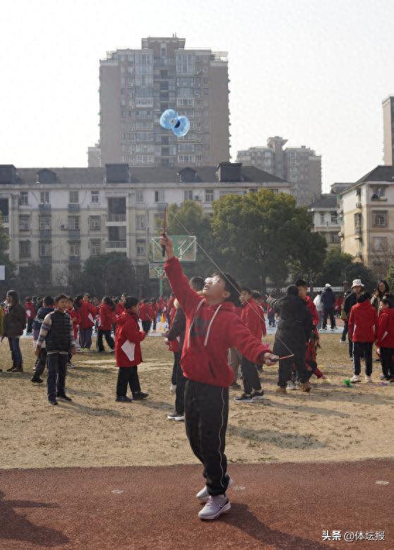 開學第一天,杭州師範大學附屬丁蘭實驗學校的體育含量太足了。全校學生不上課,而是走出教室參加“校園吉尼斯”活動。