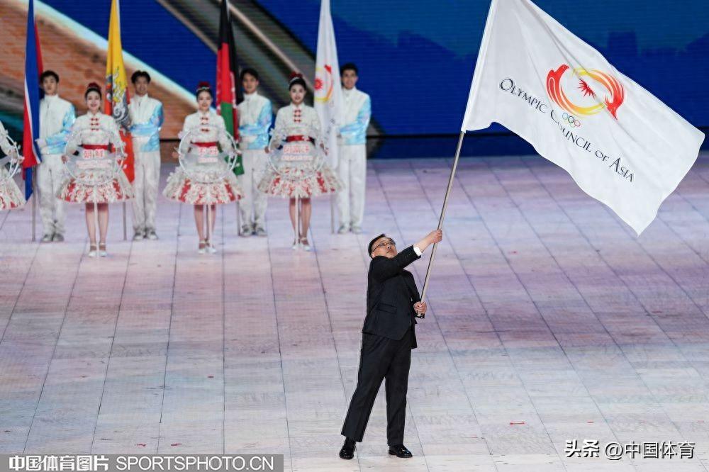 亞奧理事會第一副主席霍震霆手執亞奧理事會會旗
