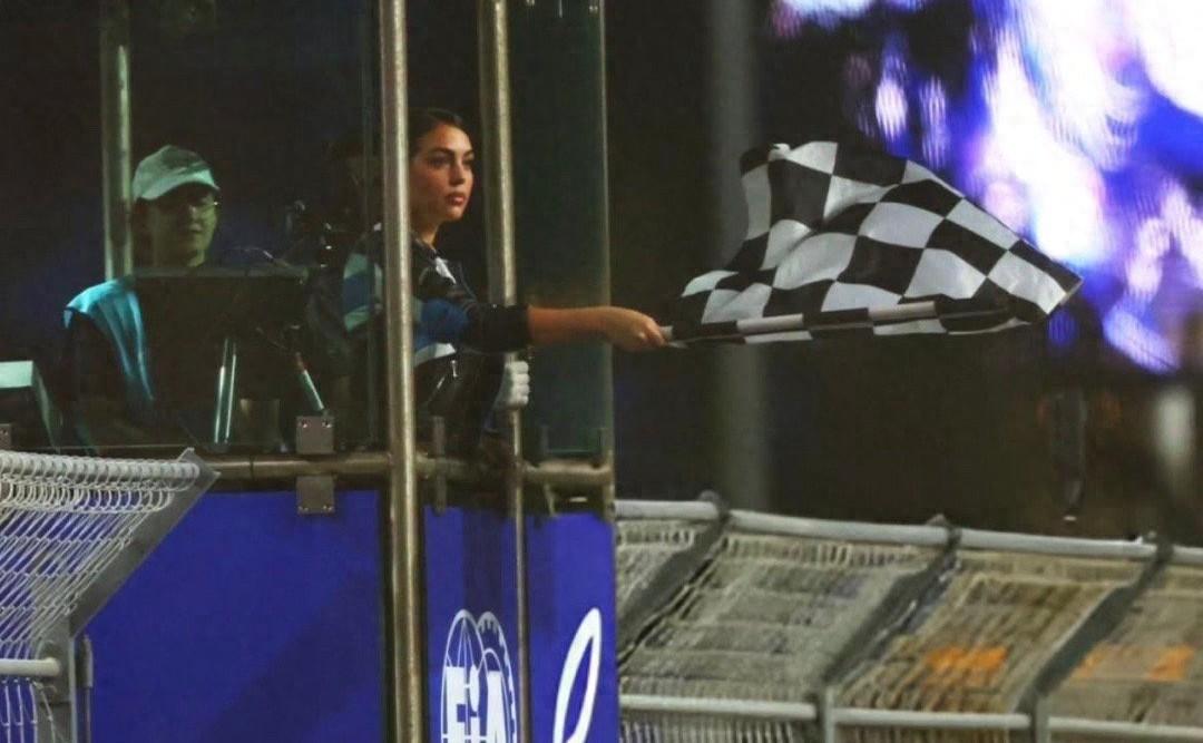 近日,C羅未婚妻喬治娜亮相2025年Formula E賽車吉達站的比賽,並且擔任了結旗手一職,只見她英姿颯爽,非常幹練,穿着賽車夾克出席活動,在高塔上揮動旗幟,頗爲帥氣。