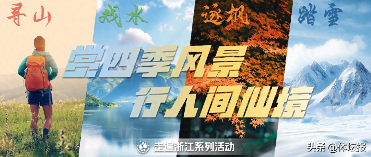 此次活動以年度爲單位,以四季爲依託,分別用“尋山”、“戲水”、“逐楓”、“踏雪”作爲四季活動的主題——春啓“尋山”,遍訪浙江的名山大川,探尋自然的壯麗與寧靜;夏續“戲水”,感受水的利萬物而不爭,在湖泊與溪流間釋放壓力;秋行“逐楓”,在金色海洋裏追趕秋日的美好,用腳步丈量大地的寬廣;冬藏“踏雪”,用冰雪運動點燃熱情,感受冬日的冒險與奇妙。