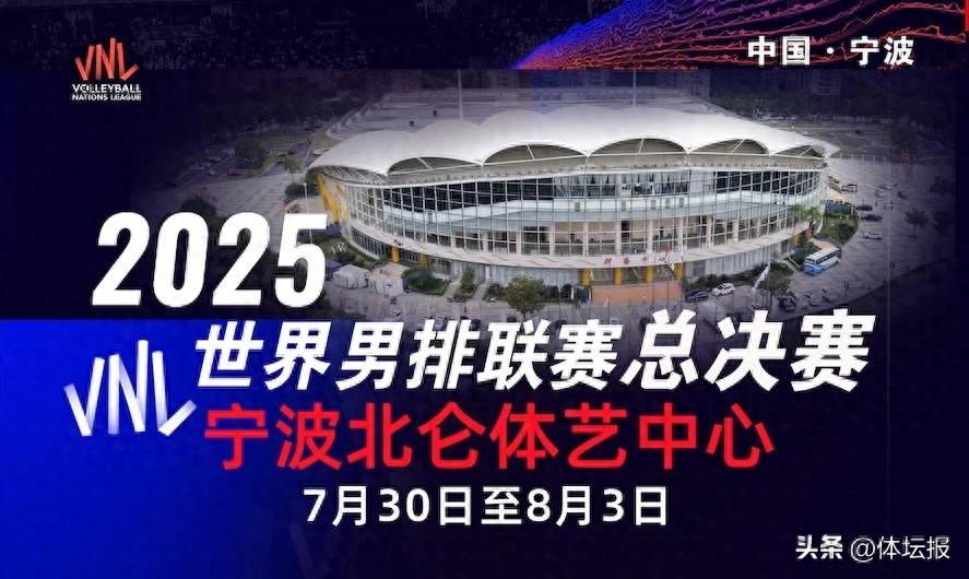 2月18日,國際排聯官宣,2025年世界男排聯賽總決賽由中國承辦,舉辦地點確定爲寧波北侖。比賽將於7月30日至8月3日在北侖體藝中心舉行。