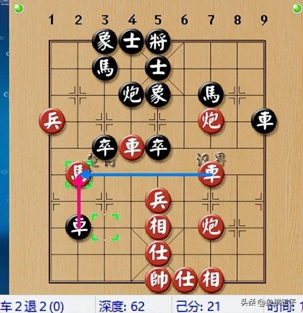黑方雙車位好,子力銜接,也能對抗,不料此時,洪智突然出馬外路,露出以炮打車的點。