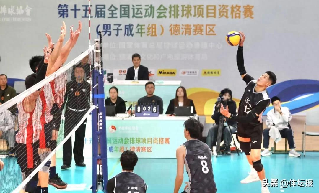 3月29日,第十五屆全國運動會男排成年組資格賽A組在德清體育中心迎來收官戰。浙江男排3比0戰勝江蘇男排,以4勝2負的戰績排名小組第2的成績,晉級全運會男排決賽。