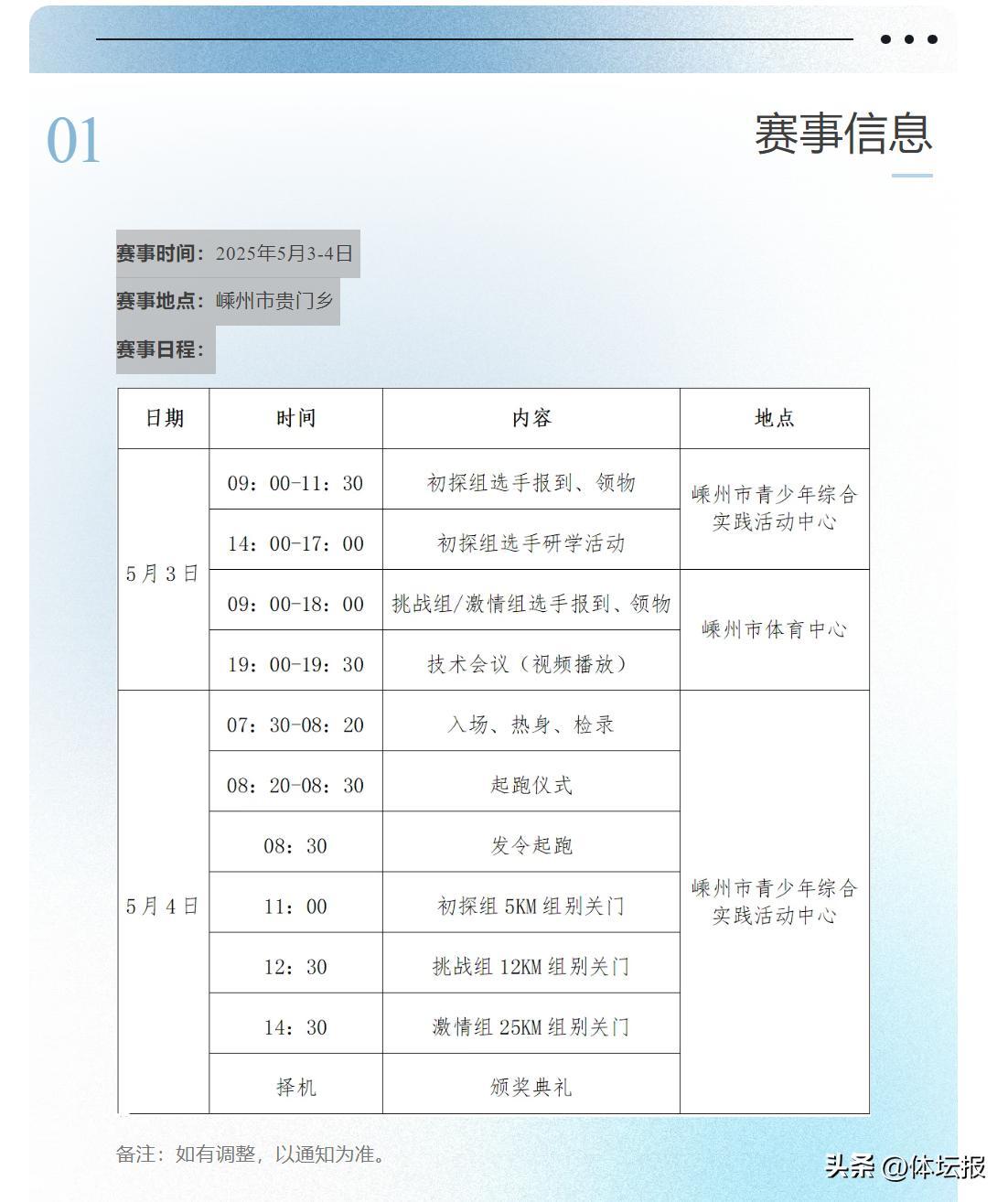 自2017年起,嵊州市貴門鄉四度迎接戶外運動愛好者,國際越野挑戰賽、浙東唐詩之路“山水挑戰賽”相繼舉辦,併成功入選浙江省重點品牌賽事。如今賽事全新升級,2025“浙東唐詩之路”全國登山賽暨浙江嵊州宋韻貴門戶外運動挑戰賽,將於5月3日至4日活力開跑。來源:嵊州山水挑戰