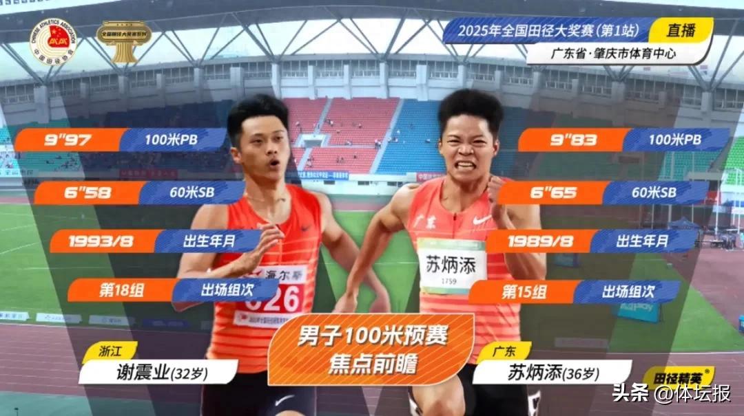 男子飛人大戰備受關注,100米亞洲紀錄保持者蘇炳添和200米亞洲紀錄保持者謝震業迎來室外賽季首秀。